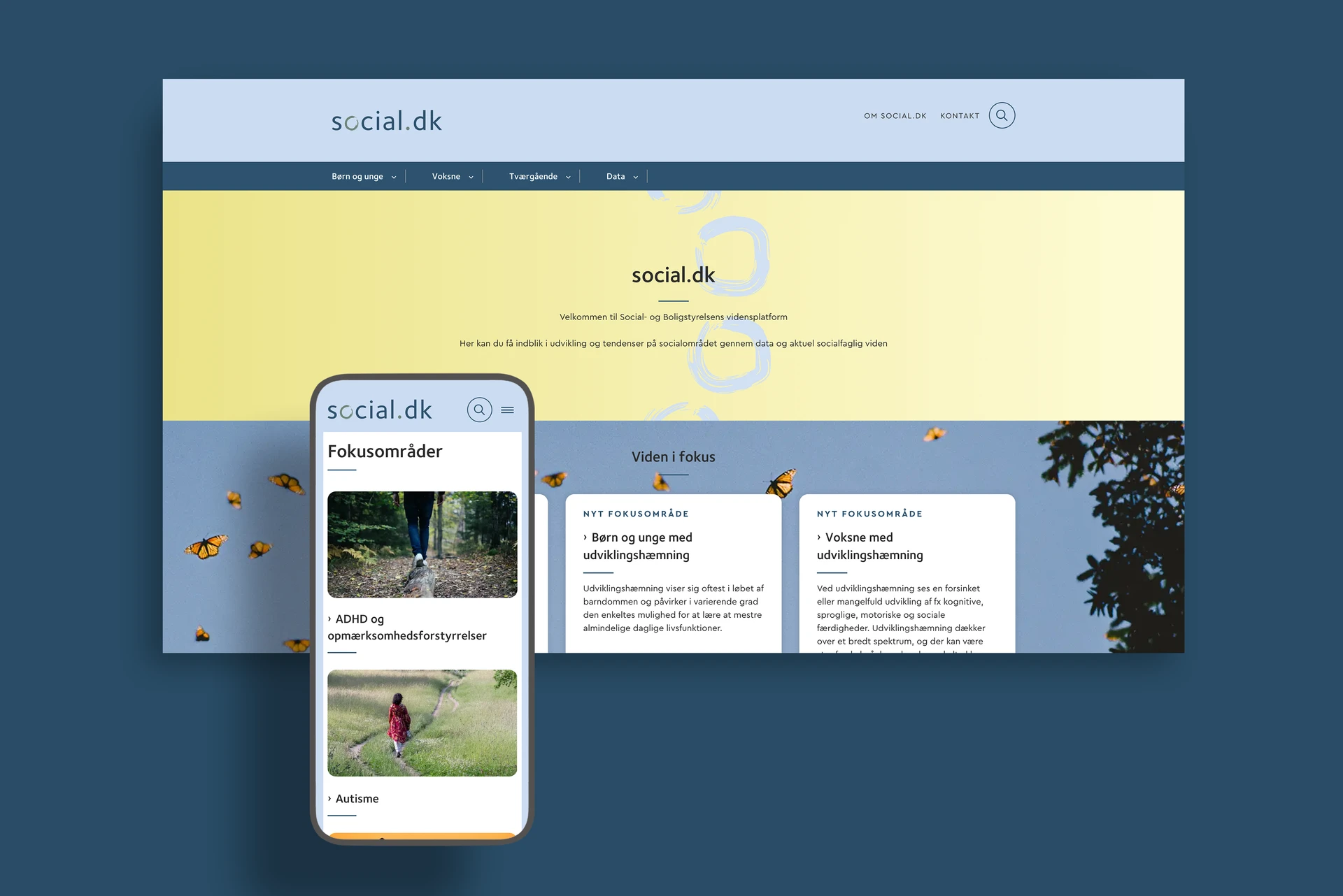 Social- og Boligstyrelsen ønskede at skabe en fælles visuel ramme for koncernens digitale løsninger og samle deres portefølje af websites på én fælles platform. Der var bl.a. sat tid af til at skabe koncept og indholdformater til et helt nyt site til videnformidling på det sociale område. En væsentlig indsats blev lagt i at få migreret og finpudset de 4600 indholdssider på hovedsitet, så de nu står knivskarpt på de nye sites.